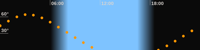 Höchster Stand (Kulmination)03:22 Uhr (h = 64,2°)
