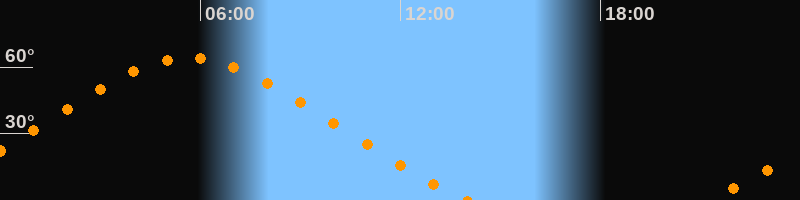 Daten und Fakten: NGC3344 (UGC 5840, PGC 31968) Rektaszension 10h 43m 31s Deklination 24° 55' 19'' Helligkeit 9,7 mag (13,7 mag/arcmin^2) Scheinbare Ausdehnung 7,1' x 6,5' Entfernung ca. 22,5 Mio ly Ausdehnung ca. 30000 ly Sichtbarkeit in Zwickau 09.12.2028 Aufgang 21:13 Uhr im Nordosten (αAz = 47,3°) Höchster Stand (Kulmination) 05:39 Uhr (h = 64,2°) Untergang 14:01 Uhr im Nordwesten (αAz = 312,7°) Standort: Zwickau, Algorithmen siehe Credits