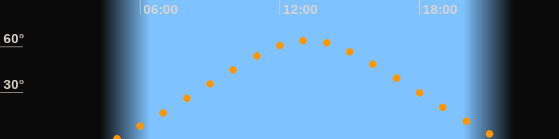 Höchster Stand (Kulmination)13:11 Uhr (h = 64,2°)