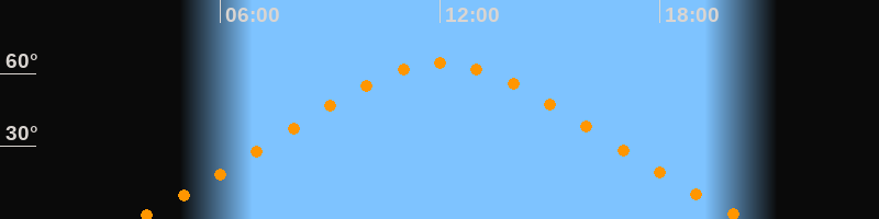 Höchster Stand (Kulmination)12:02 Uhr (h = 64,2°)