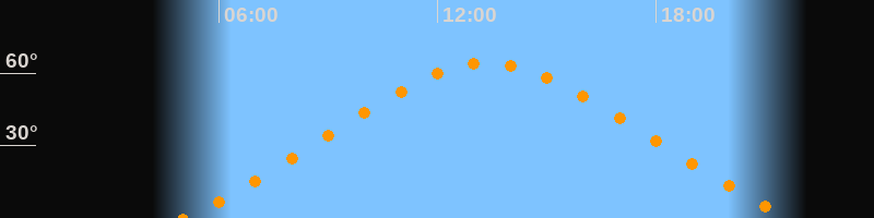 Höchster Stand (Kulmination)13:22 Uhr (h = 64,2°)