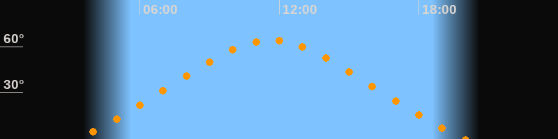 Höchster Stand (Kulmination)11:39 Uhr (h = 64,2°)
