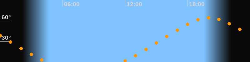 Höchster Stand (Kulmination)20:03 Uhr (h = 64,2°)