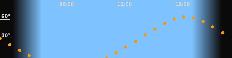 Höchster Stand (Kulmination)19:12 Uhr (h = 64,2°)