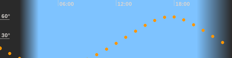 Höchster Stand (Kulmination)17:33 Uhr (h = 64,2°)