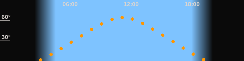 Höchster Stand (Kulmination)12:02 Uhr (h = 64,2°)
