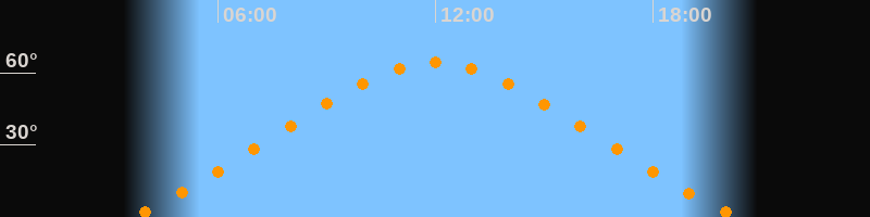 Höchster Stand (Kulmination)11:59 Uhr (h = 64,2°)