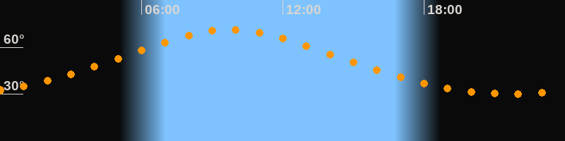 | Höchster Stand (Kulmination) | 09:46 Uhr (h = 71,3°) |