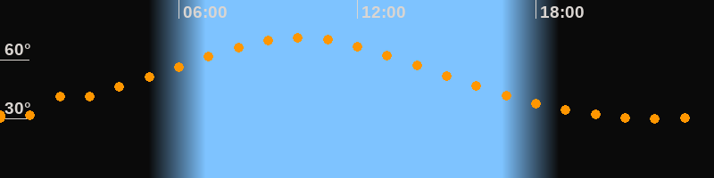 | Höchster Stand (Kulmination) | 10:03 Uhr (h = 71,3°) |