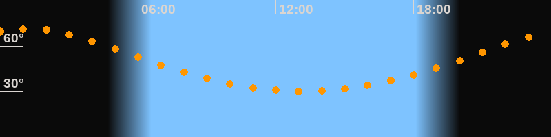 | Höchster Stand (Kulmination) | 01:13 Uhr (h = 71,3°) |