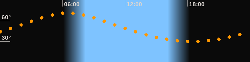 | Höchster Stand (Kulmination) | 06:29 Uhr (h = 71,3°) |