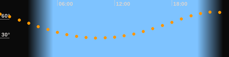 | Höchster Stand (Kulmination) | 22:19 Uhr (h = 71,3°) |