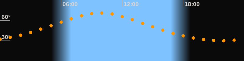 | Höchster Stand (Kulmination) | 09:51 Uhr (h = 71,3°) |