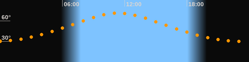 | Höchster Stand (Kulmination) | 11:22 Uhr (h = 71,3°) |
