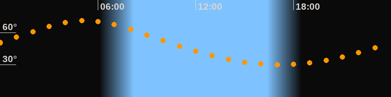 | Höchster Stand (Kulmination) | 05:11 Uhr (h = 71,3°) |