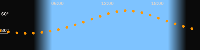 | Höchster Stand (Kulmination) | 15:11 Uhr (h = 71,3°) |