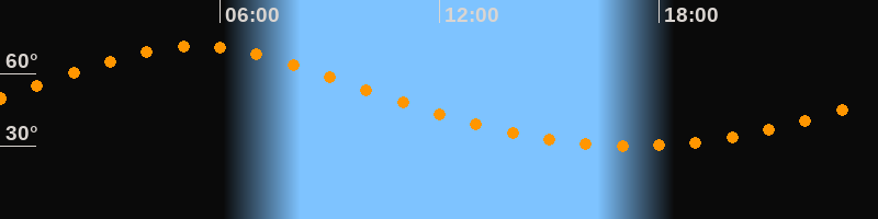 | Höchster Stand (Kulmination) | 05:20 Uhr (h = 71,3°) |