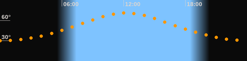 | Höchster Stand (Kulmination) | 12:11 Uhr (h = 71,3°) |
