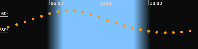 | Höchster Stand (Kulmination) | 08:18 Uhr (h = 71,3°) |