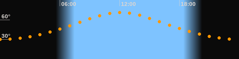 | Höchster Stand (Kulmination) | 12:04 Uhr (h = 71,3°) |