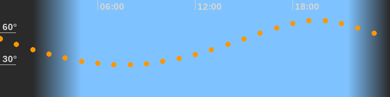 | Höchster Stand (Kulmination) | 19:30 Uhr (h = 71,3°) |