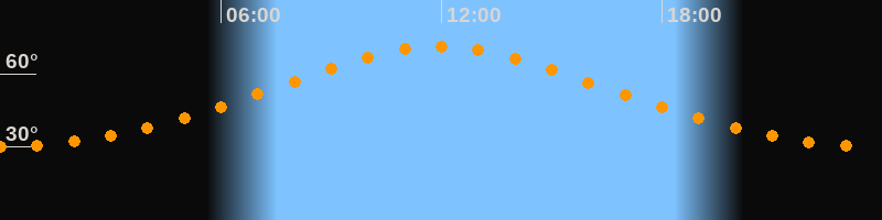 | Höchster Stand (Kulmination) | 11:57 Uhr (h = 71,3°) |