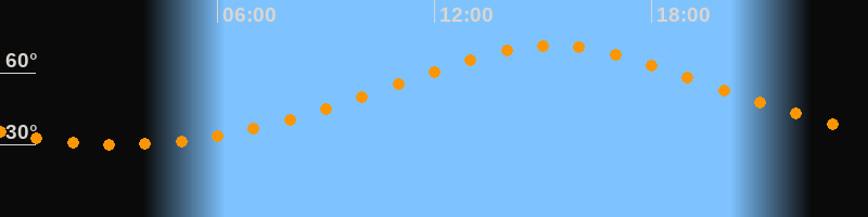 | Höchster Stand (Kulmination) | 15:16 Uhr (h = 71,3°) |