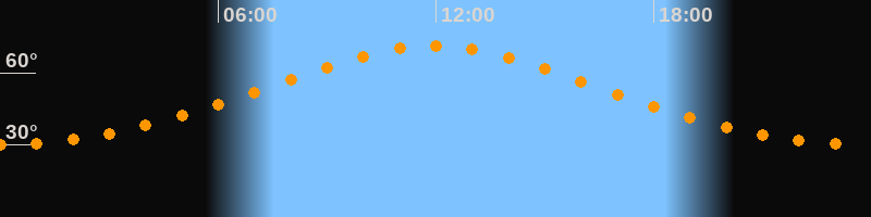 | Höchster Stand (Kulmination) | 11:55 Uhr (h = 71,3°) |