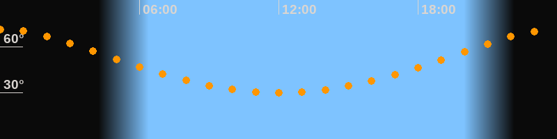 | Höchster Stand (Kulmination) | 00:00 Uhr (h = 71,3°) |