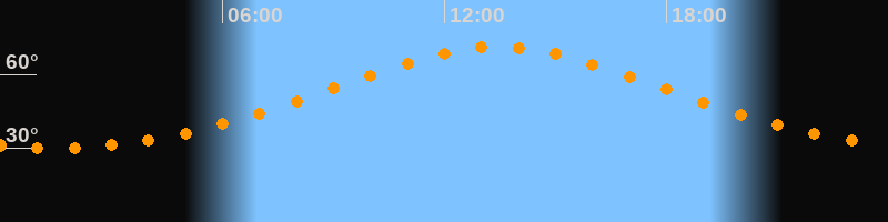 | Höchster Stand (Kulmination) | 13:27 Uhr (h = 71,3°) |