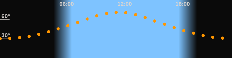 | Höchster Stand (Kulmination) | 12:12 Uhr (h = 71,3°) |