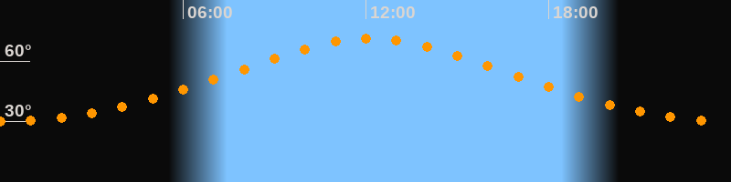| Höchster Stand (Kulmination) | 12:08 Uhr (h = 71,3°) |