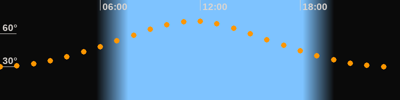 | Höchster Stand (Kulmination) | 11:37 Uhr (h = 71,3°) |