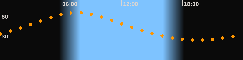 | Höchster Stand (Kulmination) | 07:37 Uhr (h = 71,3°) |