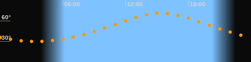 | Höchster Stand (Kulmination) | 15:23 Uhr (h = 71,3°) |