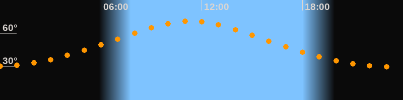 | Höchster Stand (Kulmination) | 11:19 Uhr (h = 71,3°) |