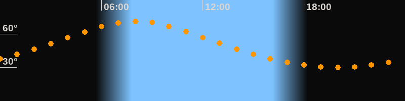 | Höchster Stand (Kulmination) | 08:01 Uhr (h = 71,3°) |