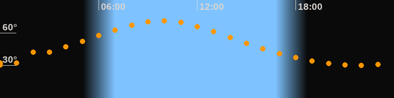 | Höchster Stand (Kulmination) | 09:50 Uhr (h = 71,3°) |