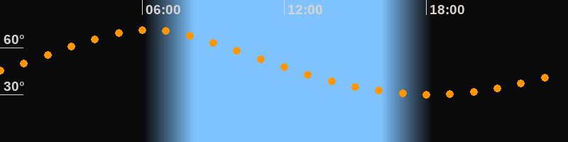 | Höchster Stand (Kulmination) | 06:14 Uhr (h = 71,3°) |