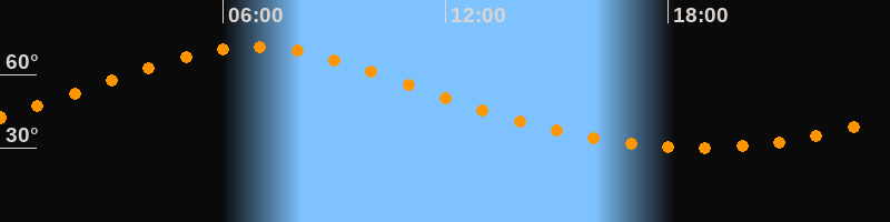 | Höchster Stand (Kulmination) | 06:50 Uhr (h = 71,3°) |