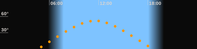 | Höchster Stand (Kulmination) | 11:35 Uhr (h = 52°) |