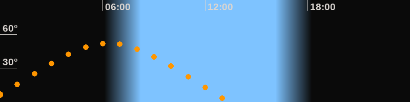 | Höchster Stand (Kulmination) | 06:21 Uhr (h = 52°) |