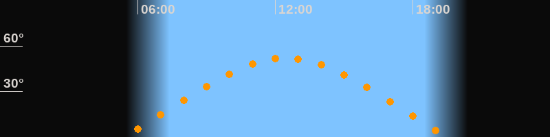 | Höchster Stand (Kulmination) | 12:27 Uhr (h = 52°) |