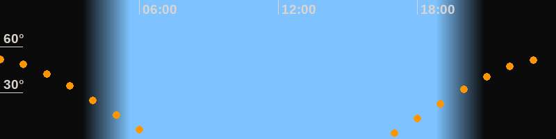 | Aufgang | 16:28 Uhr im Osten (αAz = 68,9°) |