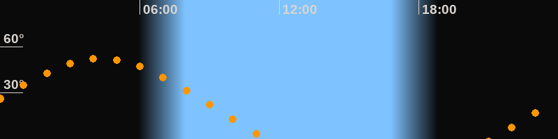 Höchster Stand (Kulmination)04:18 Uhr (h = 52,4°)