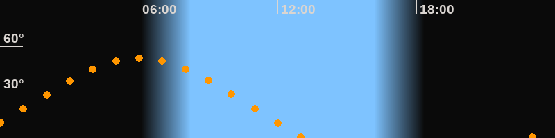 Höchster Stand (Kulmination)06:01 Uhr (h = 52,3°)