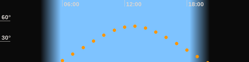 Aufgang05:40 Uhr im Osten (αAz = 68,4°)