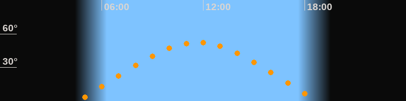 Höchster Stand (Kulmination)11:39 Uhr (h = 52,3°)