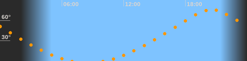| Untergang | 07:06 Uhr im Norden (αAz = 342,5°) |