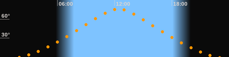 | Höchster Stand (Kulmination) | 12:24 Uhr (h = 75,9°) |